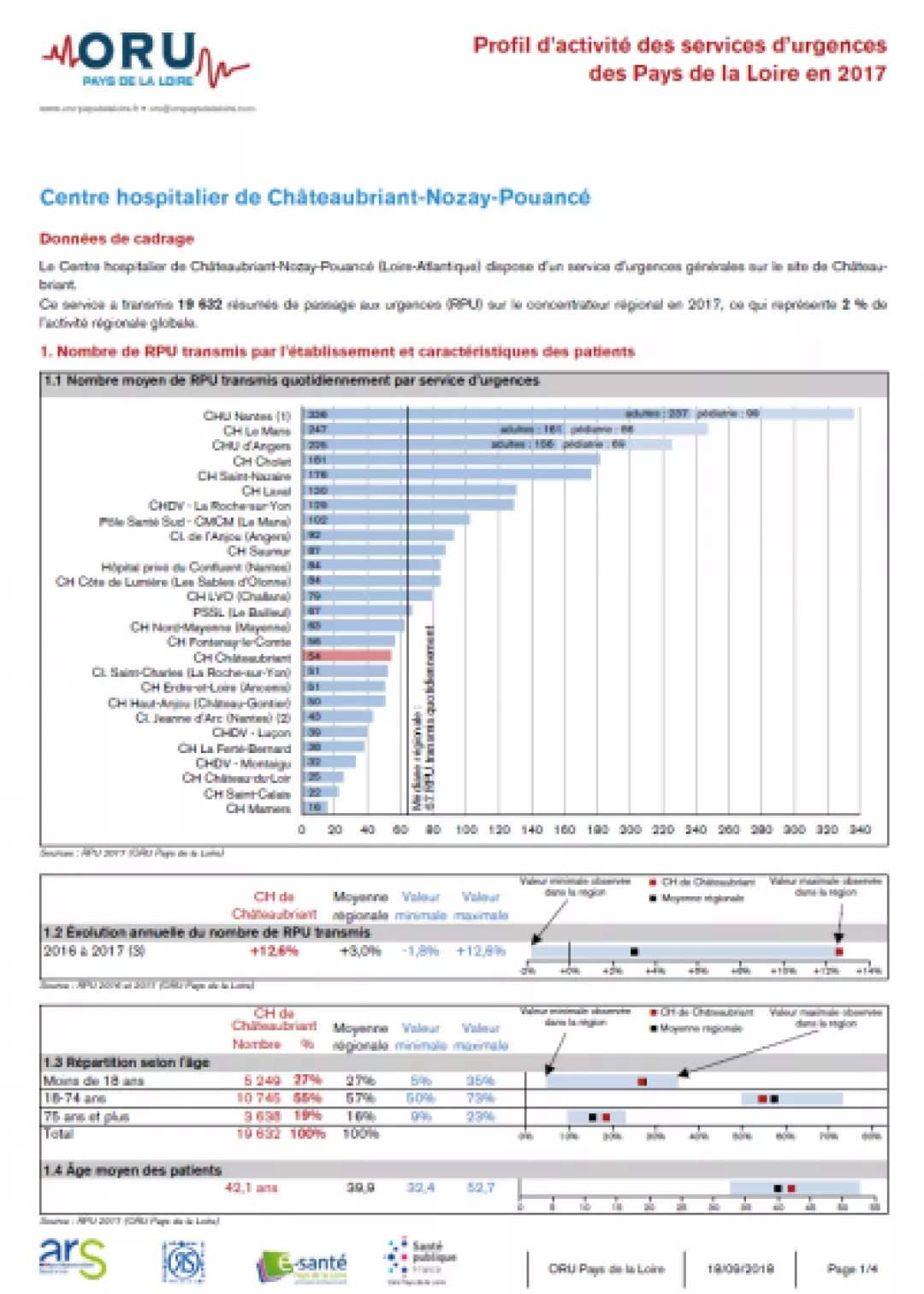 ORU Pays de la Loire, octobre 2019, 4 p. pour chacun des 30 services d'urgences